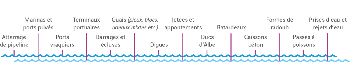 Travaux et infrastructures portuaires : quais, dragage, hydropompage, démolition immergées, enrochements, récifs artificiels...